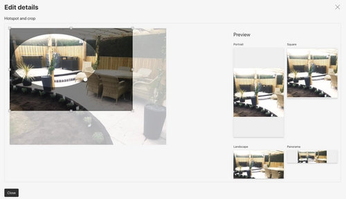 As you can see in the image above, previews are also provided for some common usage dimensions portrait, square, landscape and panorama, so you get a feel for how the image will display depending on the dimensions of the image when added to the site.