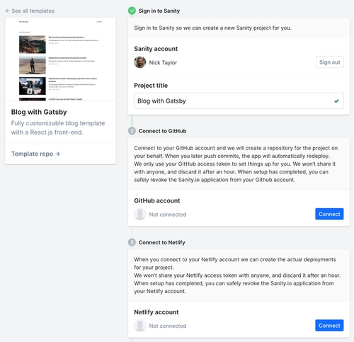 One of the great parts of getting to know Sanity, was the ability to go through a three step process which got the studio and web application running on Netlify in a matter of minutes.